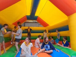 Vandaag startte onze dag met het knutselen van versieringen voor het trouwfeest. Ook de uitnodigingen werden gemaakt. In de namiddag kwam Cupido op bezoek. Hij had gezien dat het daten zo goed was meegevallen, dat hij besloot een pijl af te schieten en de romantiek naar boven te laten komen. We verzamelden een boeket zodat we niet met lege handen naar de volgende date moesten. Na het vieruurtje mochten we gaan zwemmen, wat was dat leuk! ‘s Avond mochten we ons uitleven op het luchtkussen. Moe, maar voldaan kropen we in ons bed.